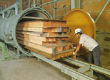 けやき、脂松、屋久杉などの高級銘木の乾燥に高周波減圧乾燥機が採用されています。天然乾燥でのかびの発生、割れやねじれによる不良材の量を大きく減らせています。乾燥時間も大幅に短くすることができています。均一に加熱できる高周波誘電加熱の適用事例です。 |
